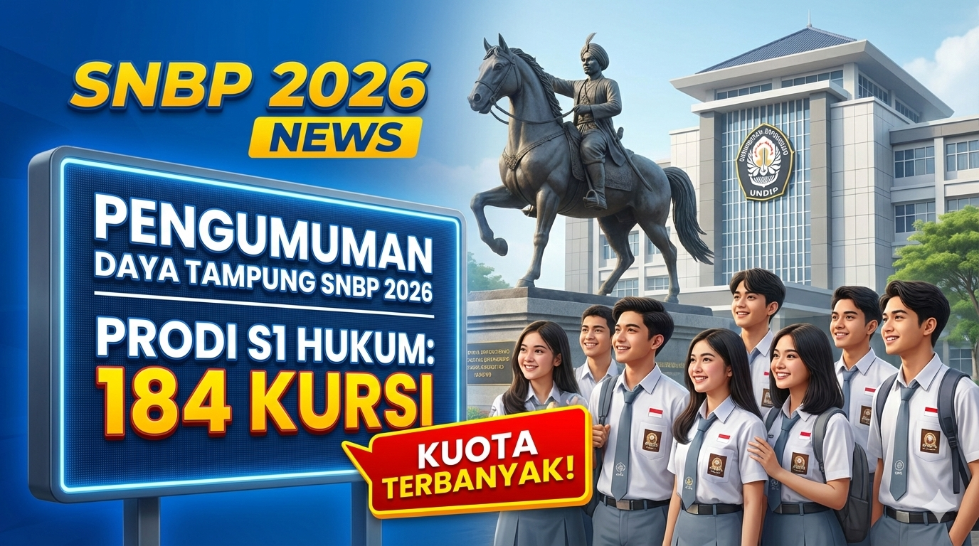 Daya Tampung Undip di SNBP 2026 Resmi Diumumkan, Prodi Hukum Jadi yang Terbanyak Peminat dan Kuota – Universitas Diponegoro (Undip) kembali menjadi sorotan menjelang dibukanya Seleksi Nasional Berdasarkan Prestasi (SNBP) 2026. Salah satu perguruan tinggi negeri favorit di Indonesia ini secara resmi mengumumkan daya tampung mahasiswa baru untuk seluruh program studi yang dibuka melalui jalur SNBP. Informasi ini menjadi perhatian penting bagi siswa kelas XII SMA/SMK/MA yang berencana melanjutkan pendidikan ke jenjang perguruan tinggi negeri tanpa tes tertulis.